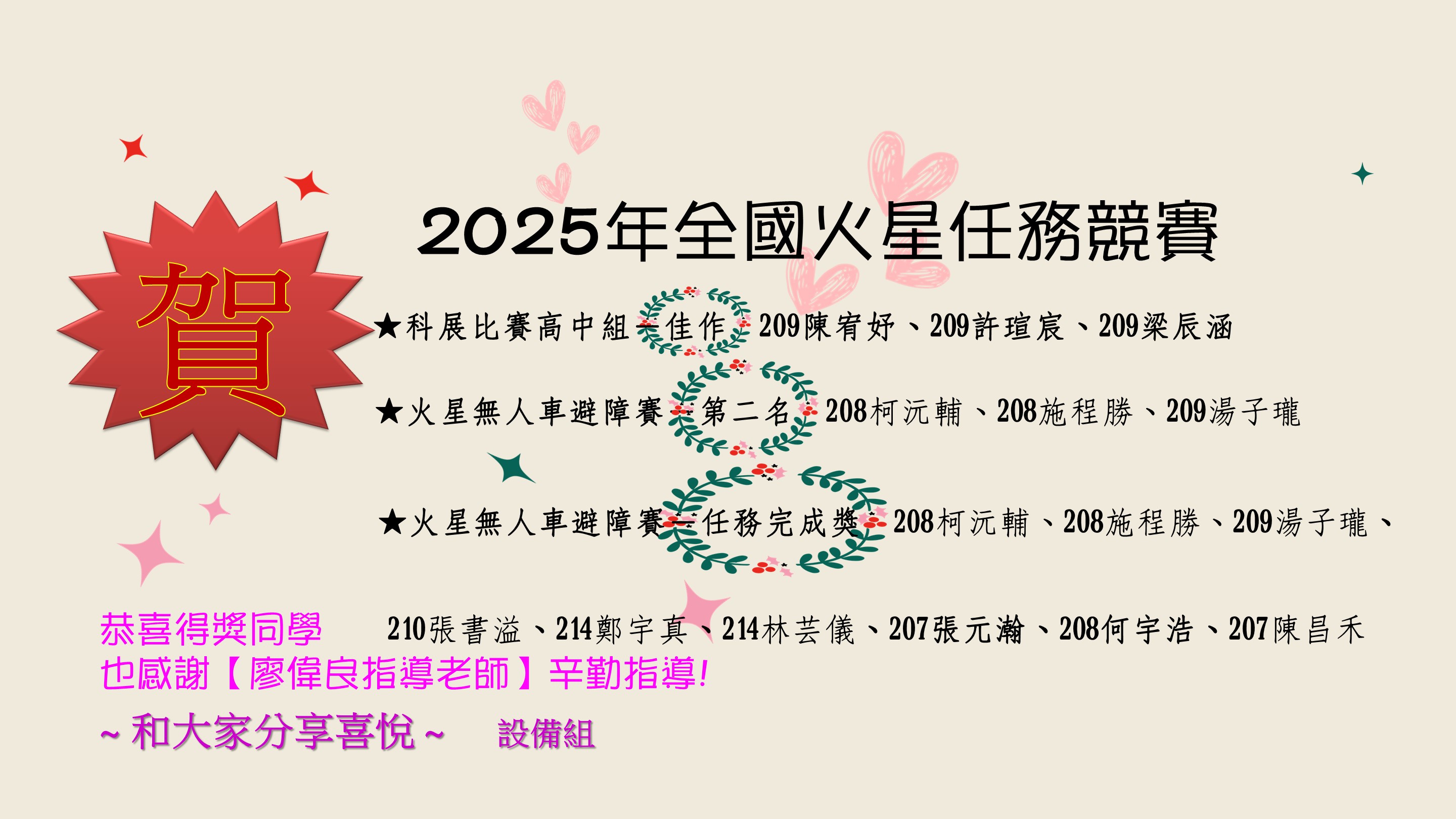賀!!本校學生參加2025年全國火星任務競賽榮獲佳績~~